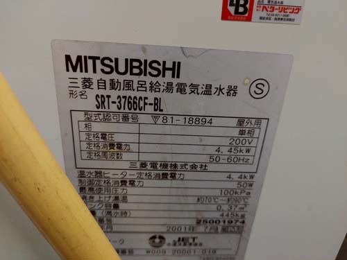 平川市新屋 三菱電機自動風呂給湯電気温水器SRT-3766CF-BL→コロナ給湯器 給湯器交換工事